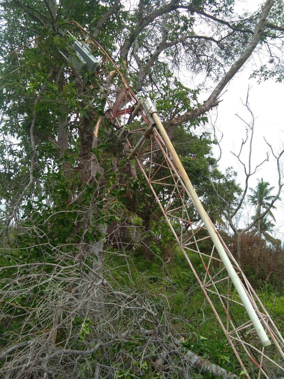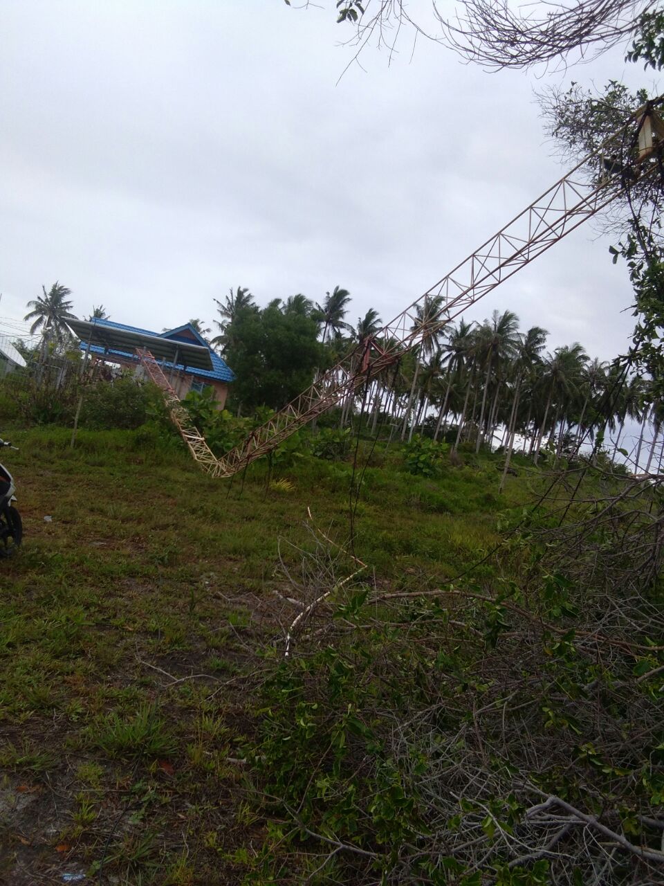 Angin kencang ini juga menyebabkan salah satu Tower Base Transceiver Station (BTS) Di Teluk Buton Telkomsel USO Telinfo Tuntas rubuh.