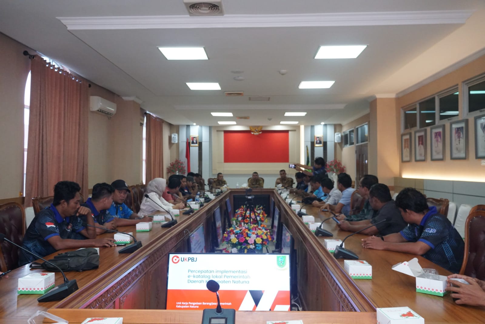 Sebagai narasumber pada sosialisasi ini Kepala Bagian Unit Kerja Pengadaan Barang dan Jasa Kabupaten Natuna, Hendri Dunan menjelaskan Implementasi E-katalog lokal Pemerintah Kabupaten Natuna.