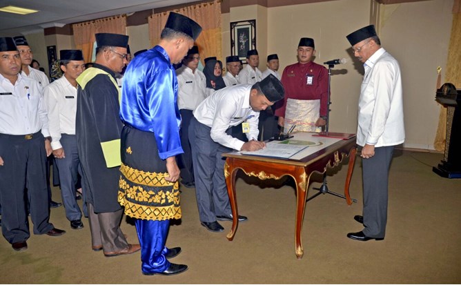 Bupati Natuna memberikan ucapan selamat kepada Raja Darmika yang dilantik menjadi Kadis KominfoPenandatanganan berita acara sumpah oleh Kadis Kominfo Raja Darmika