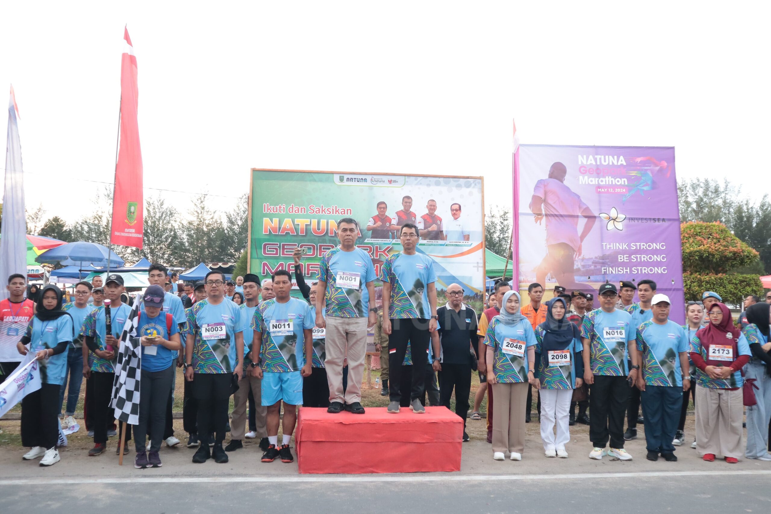 Acara di tandai dengan pengangkatan bendara start sebagai tanda lomba Natuna Geopark Marathon di mulai.