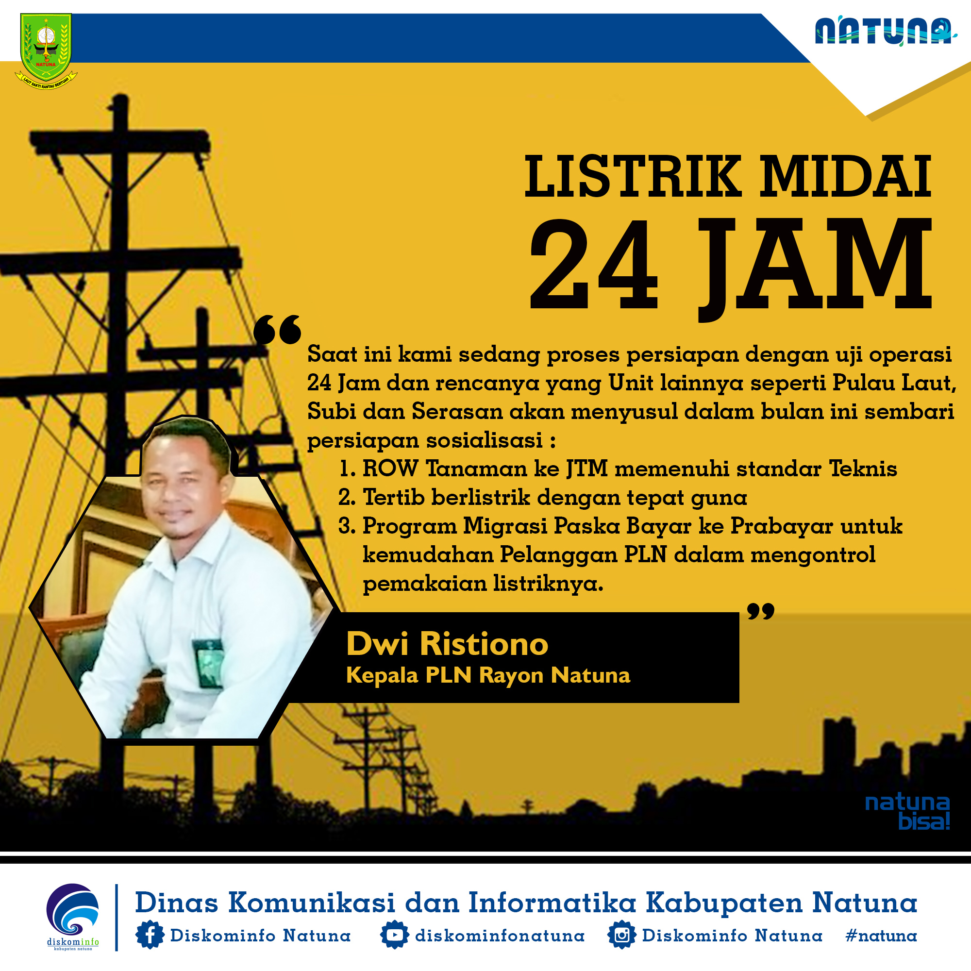 Listrik Midai Beroperasi 24 Jam Post published:03/05/2018 Post category:PUBLIKASI Listrik Midai Beroperasi 24 Jam Tags: diskominfo, infografis, kominfo, natuna, oneirfaan, publikasi Read more articles Previous PostKOPI PAGI – Limbah B3 Next PostPengelolaan Limbah B3 You Might Also Like Diskominfo Batola gandeng Relawan TIK Kalsel Latih Desa Buat Website 13/10/2017 Gunakan RT/RW Net, 4 Warga Bengkulu Terancam Penjara 6 Tahun 28/12/2017 Dengarkan Kopi Pagi (Kancah Opini Pagi Hari) 15/02/2018