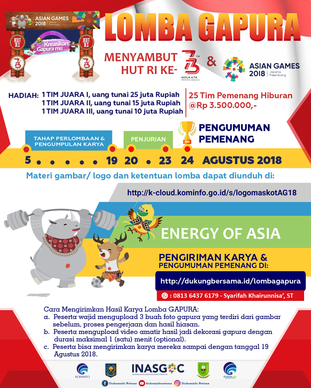Lomba Gapura Post published:10/08/2018 Post category:PUBLIKASI Lomba Hias Gapura Se-Indonesia Tags: asiangames, dirgahayuindonesia, diskominfo, diskominfonatuna, hutri73, infografis, kominfo, natuna, oneirfaan, publikasi Read more articles Previous PostPray For Lombok Next PostRumah Ludes Terbakar, KIM dan Karang Taruna Desa Ceruk Menggalang Dana You Might Also Like Masyarakat Menilai Jaringan Internet di Natuna Kini Semakin Bagus 21/09/2021 Bolehkah Powerbank Dibawa Dalam Penerbangan? 20/03/2018 Wakil Bupati Ngesti Ratas Sikapi Kebakaran Kabel Jaringan Fiber Optik Di Area Cemaga 08/03/2019